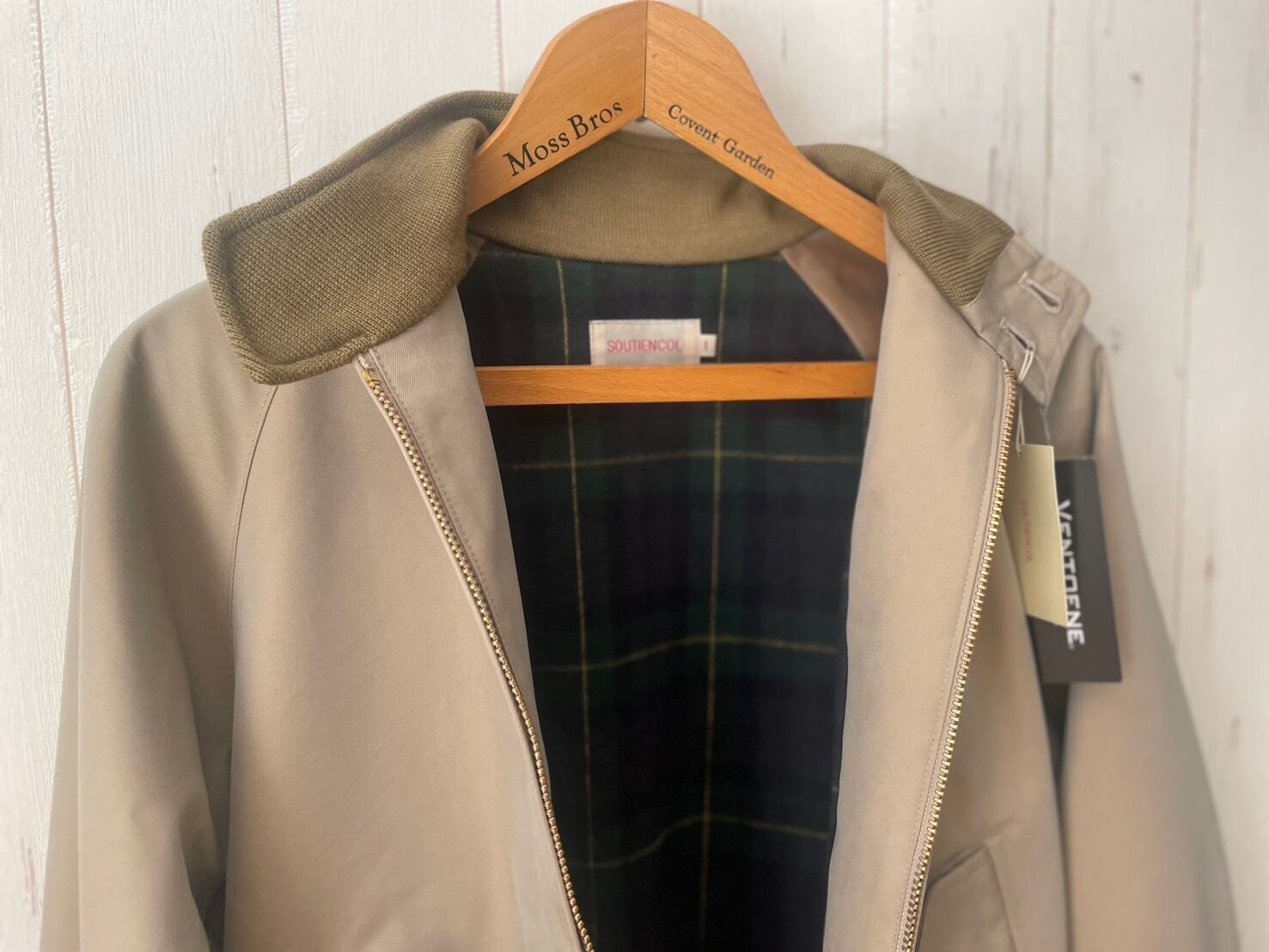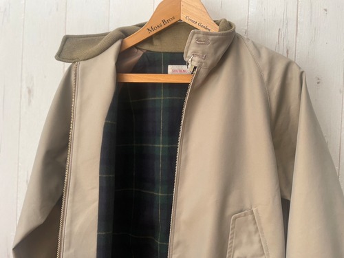 裏地は胴周りにグリーン系のタータン柄のフランネルコットンが使われており、袖には滑りの良いポリエステル生地になっています。