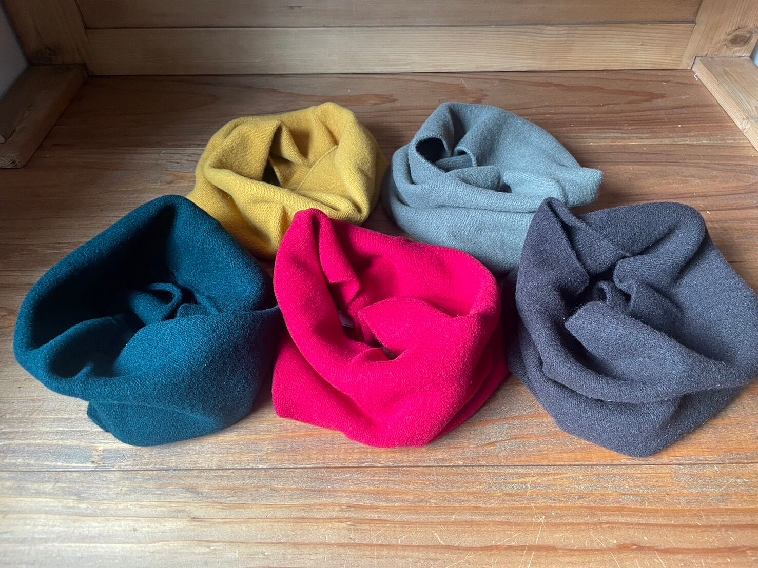シンプルな形ではありますが、いろいろな使い方ができるネックウォーマー。