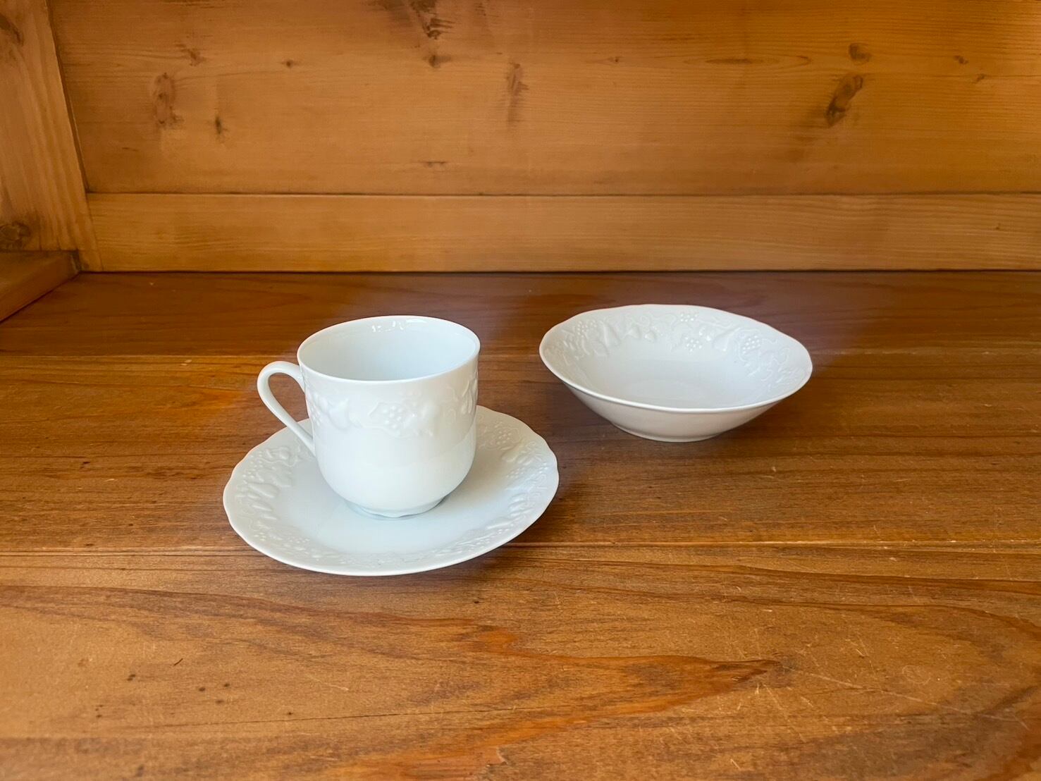 エレガントなリモージュ磁器ですが、フルーツモチーフのレリーフがとてもかわいい、そして丈夫、収納時に重ねた時にもおさまりやすいので普段使いにもぴったりです。